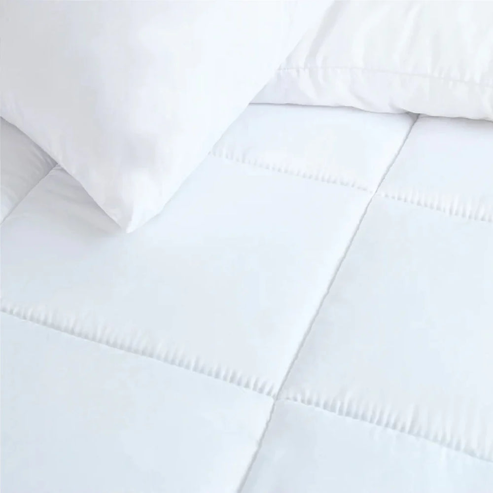 Luxury mattress toppers are generously filled with 100% conjugated polyester filling, this means that the polyester fiber are twisted, giving it extra resiliency and bounce, allowing it to last long and fill the mattress topper up with a strong loft factor. The expertly made casing is made up of 100% cotton.